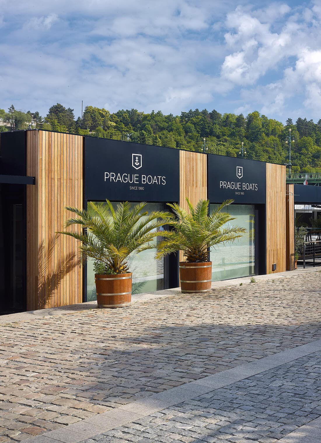 The office for ticket sales and event coordination for Prague Boats features a compact form that preserves open views of the river and surrounding landmarks. The design seeks harmony with the elements — water and sunlight — to create a pleasant and efficient workspace.